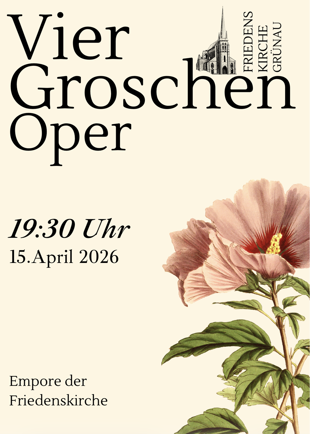 Vier-Groschen-Oper um 19:30 Uhr, Friedenskirche Grünau